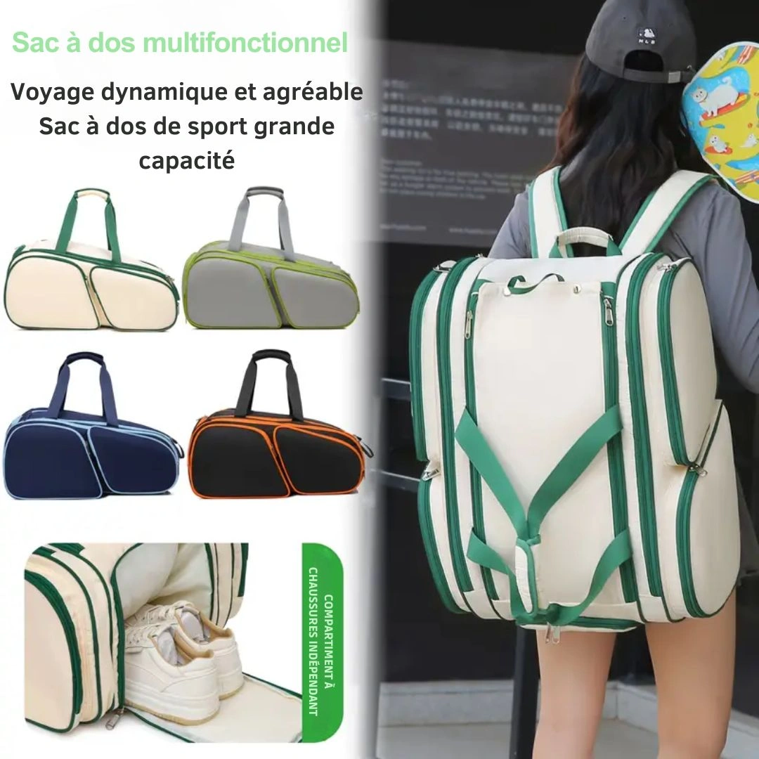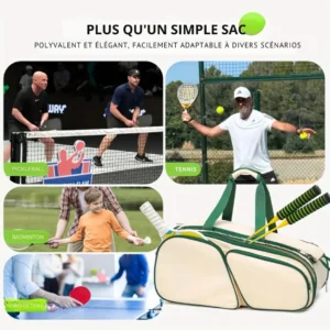 Le Sac badminton multi-poches vintage sport réunit la nostalgie du style rétro avec les exigences contemporaines en matière de fonctionnalité.
