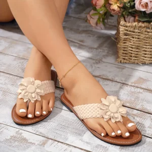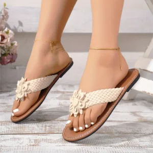 Tong Cuir Fleur Tressée Femme – Une allure bohème et chic