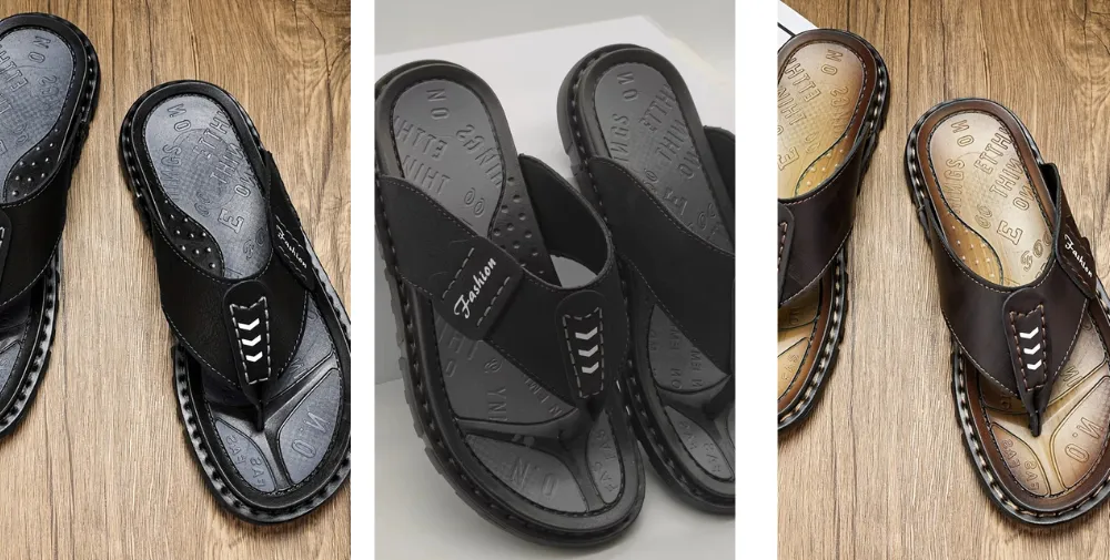 Les Tong Cuir Homme Marche Confort sont spécialement conçues pour les hommes à la recherche de confort et de raffinement durant leurs promenades estivales.